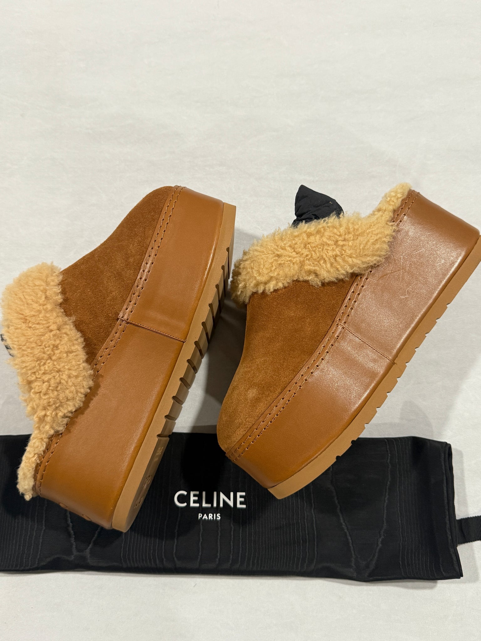 • Load image into Gallery viewer, Celine Dana Shearling Wedge Platform Size 39.5