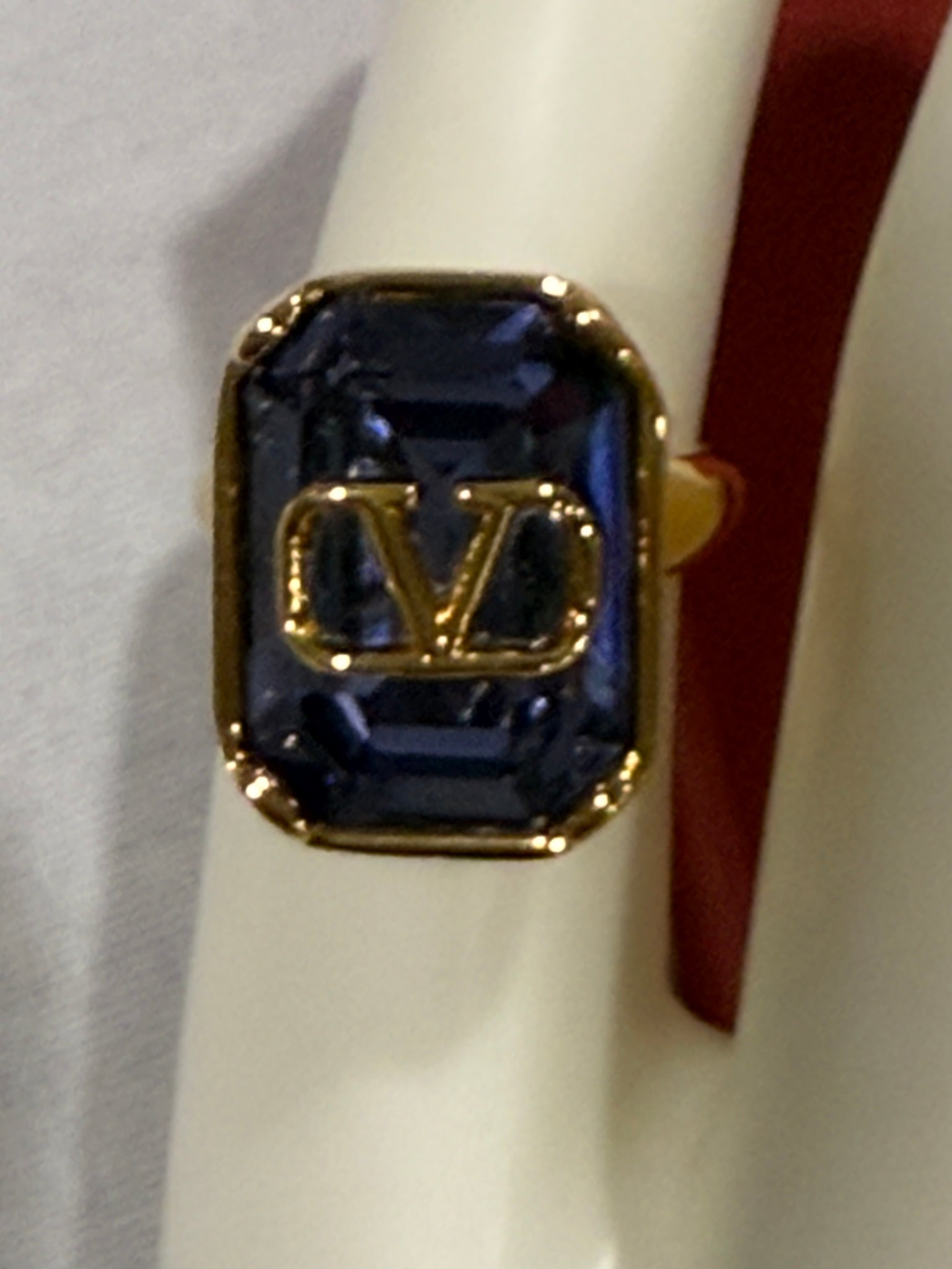 Valentino Garavani VLogo Purple Crystal Ring Size M