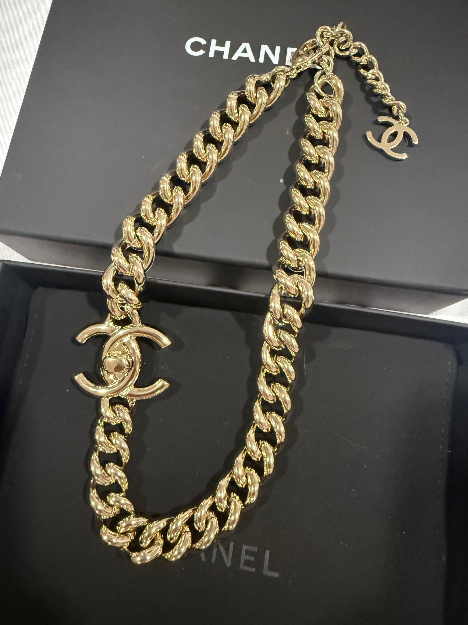 Chanel 25 CC Turnlock Goldtone Chain Choker Necklace
