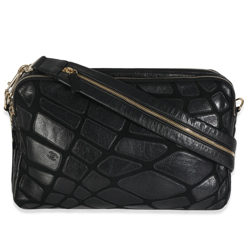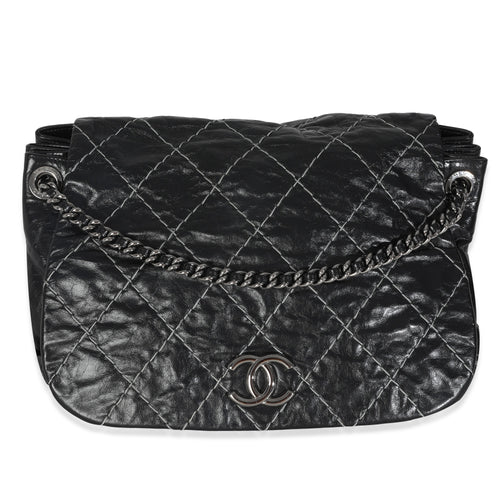 Vintage Black Matelasse Quilted Lambskin Crossbody Full Flap Bag