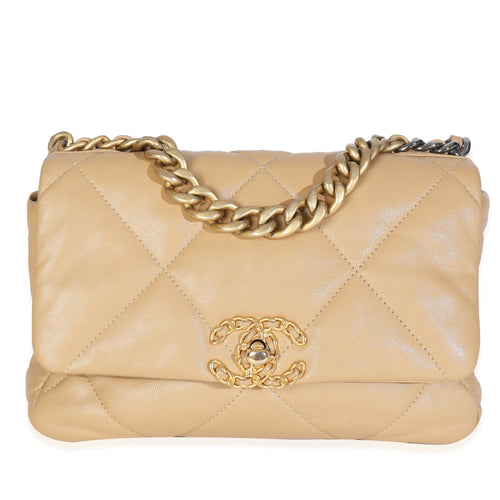 Beige Quilted Lambskin Chanel 19 Flap Bag