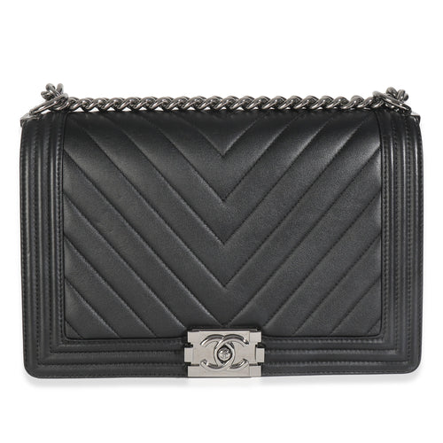 Black Calfskin Quilted Chevron New Medium Boy Bag