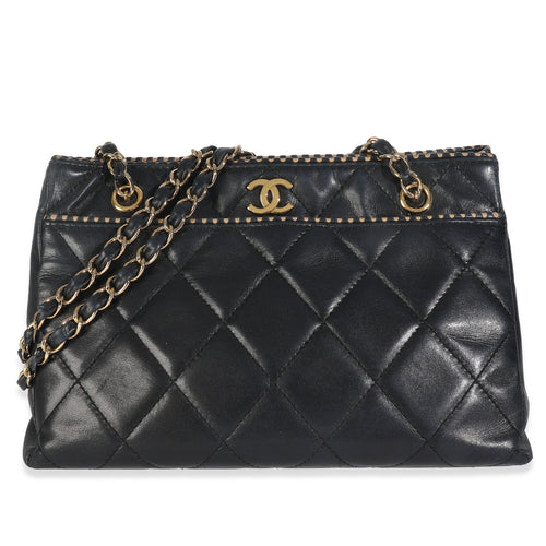 Vintage Beige Cut Out Black Quilted Lambskin Chain Tote