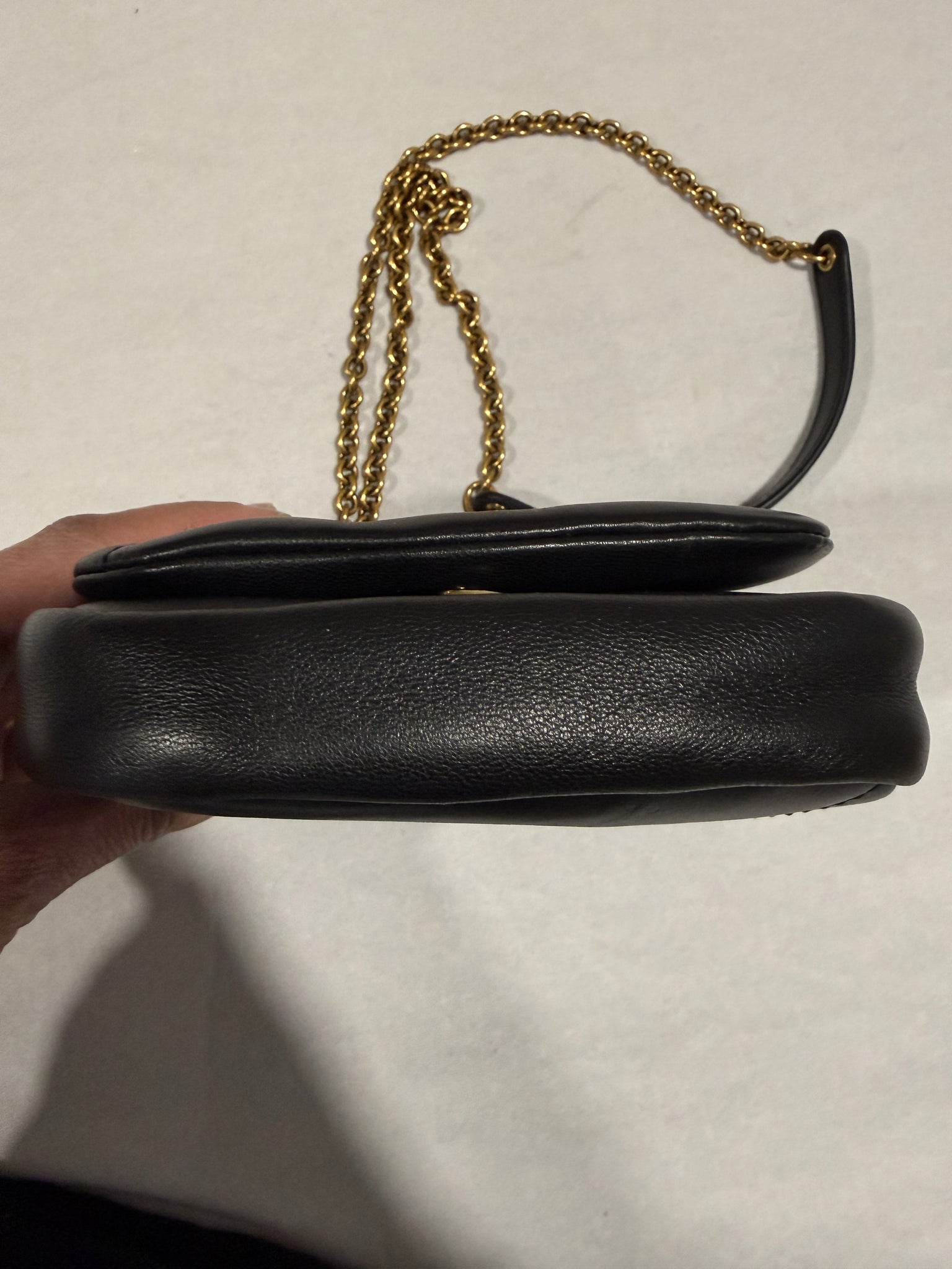 This stunning small shoulder bag is crafted of lambskin leather in black.